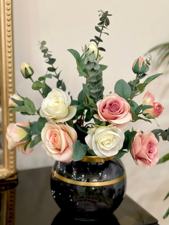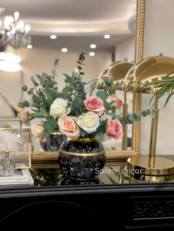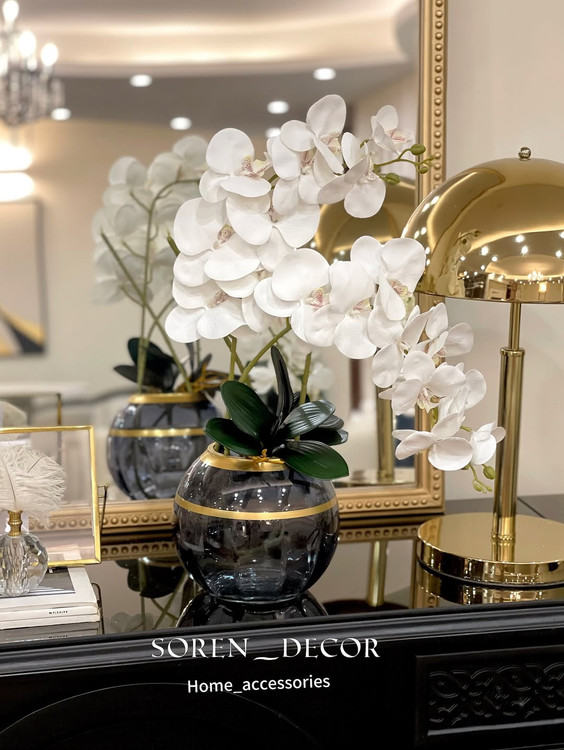 گلدان گرد شیشه ای ضخیم و سنگین با ارتفاع ۱۸ سانتیمتر و دهانه ۱۱ سانتیمتر. طراحی کاملا رنگ ثابت و قابل شستشو. مناسب برای انواع گل های ارکیده، رز، پئونی و اکالیپتوس.