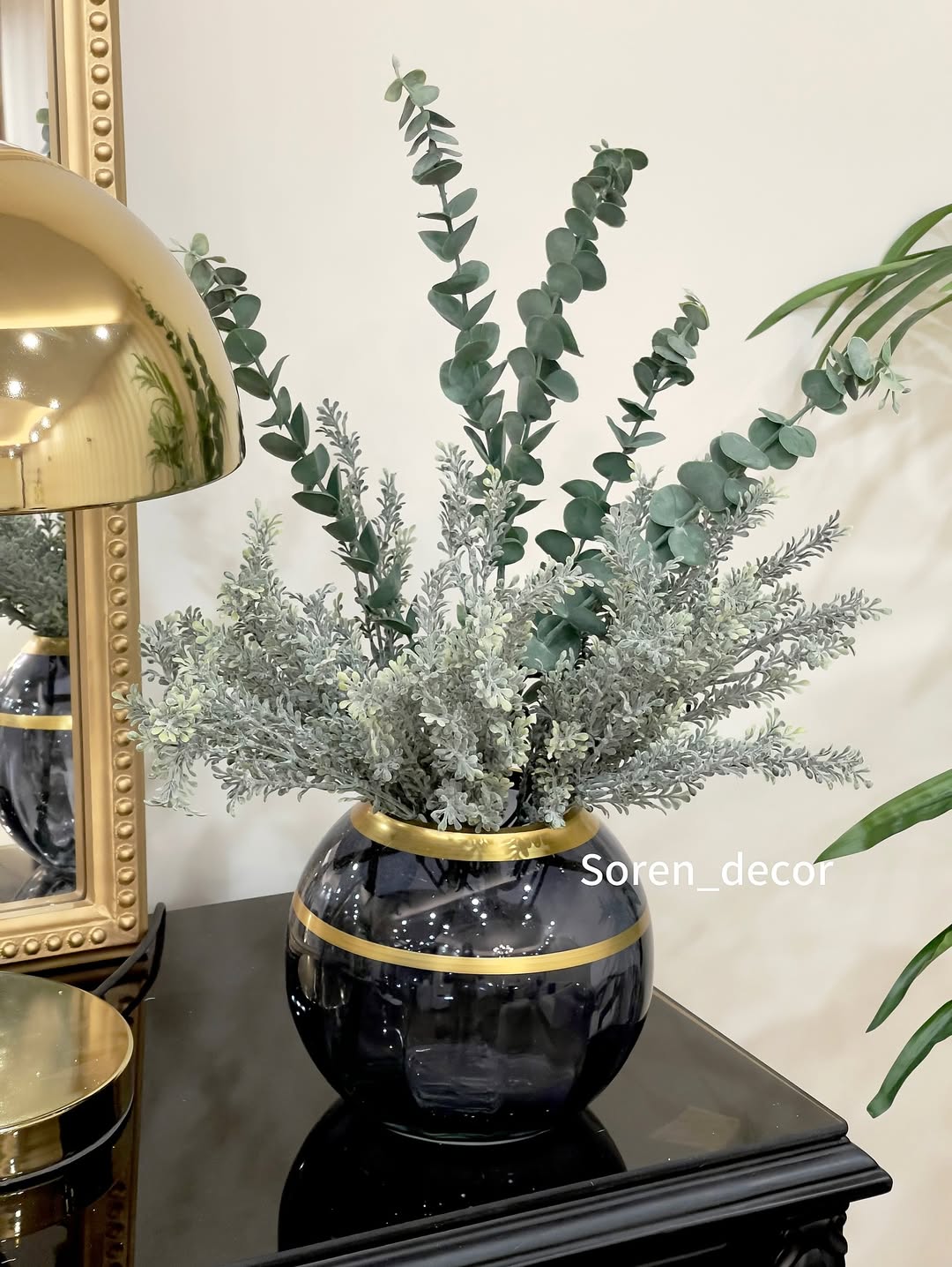 گلدان گرد شیشه ای ضخیم و سنگین با ارتفاع ۱۸ سانتیمتر و دهانه ۱۱ سانتیمتر. طراحی کاملا رنگ ثابت و قابل شستشو. مناسب برای انواع گل های ارکیده، رز، پئونی و اکالیپتوس.